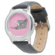Kinder Edelstahluhr mit schwarzem Lederarmband