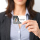 Personalisieren Sie diese horizontalen grauen Abzeichen mit einem Mitarbeiter-Foto, Firmenlogo, Bar-Code, Mitarbeiter-ID und Namen.