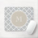 Graues Quatrefoil Muster, beige Monogramm Mousepad