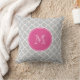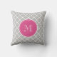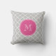 Graues Quatrefoil Muster, Pink-Monogramm Kissen