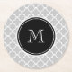 Graues Quatrefoil Muster, schwarzes Monogramm Runder Pappuntersetzer