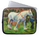Ein spezieller Neoprenschläfer zum Schutz eines 10" Laptops, den jeder Pferdebegeisterte Liebe bekommt! Das Bild ist von einem grauen Shire-Pferd in einer Kundgebung in Abergavenny, Wales, aus einem originellen pastellfarbenen Gemälde von Judy Adamson.