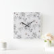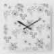 Graues Schwarzes Retro Y2K Hippie Blume Muster Quadratische Wanduhr