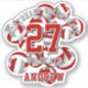 Dieser Beachvolleyball-Aufkleber für Jungen und Mädchen zeigt das Bild eines Haufen verschiedener Größen rot, grau und weiß, auf dem man den Namen, die Trikotnummer, den Teamnamen und den Maskottnamen des Athleten anpassen kann - von katz_d_zynes
