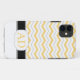 Moderne und trendige iPhone 5 Case mit einem grauen und gelben abwechselnd Zickzack Zickzack-Muster, und personalisiert mit Ihren Monogramm / Initialen.