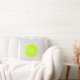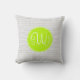 Dieses Kissen hat ein graues Zickzack Muster im Hintergrund mit einem grünen Kreis und ein Monogramm mit drei Buchstaben in der Mitte.