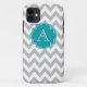 Graues und weißes Zickzack aquamarines Monogramm Case-Mate iPhone Hülle