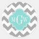 Graues und weißes Zickzack ZigZag Muster, Aqua Turquoise Quatrefolie 3 Initial Monogram Passen Sie dies mit einem dreistufigen Monogramm an oder ändern Sie das Design, um Ihren Namen oder anderen Text hinzuzufügen. Sie können auch den Schriftart ändern, die Größe des Schriftartes und die Farbe des Schriftartes anpassen, den Text verschieben, um die Buchstaben des Monogramms auszurichten usw. Bitte beachten Sie, dass es sich um ein digital erstelltes Grafikdesign handelt, das auf das zugrunde liegende Produkt übertragen wird. Das Design selbst enthält kein echtes Band, Etiketten, Metalle, Prägung, etc. Wenn Sie dieses Design / Label in anderen Farben möchten, senden Sie uns einfach eine E-Mail. 2013 ©FantabulousPatterns Alle Rechte vorbehalten