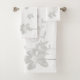 Graufarbene Blume Streifen auf Weiß Badhandtuch Set