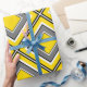 Umhüllungspapier mit original gemischter mediengeometrischer Malerei bedruckt.