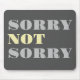 Funny und sarkastisch Text Design Mousepad mit der Phrase Sorry nicht Sorry in grau und gelb. Fügen Sie zusätzlichen Text hinzu und/oder ändern Sie Hintergrundfarben für eine persönliche Touch.