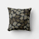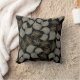 Grau goldfarbene, breite Blätter auf dem schwarzen amerikanischen Mojo-Wurfkissen mit schönen breiten Blätter in Grau und Gold auf schwarzem Hintergrund.