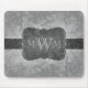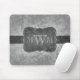 Ein graugraues Mauspad mit einem dunkelgrauen horizontalen Streifen und ein Ort zum Personalisieren mit Ihren Initialen.