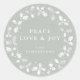 Graugrüne Liebe für Frieden + Joy Holly Wreath Runder Aufkleber