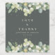 Graugrüne Snowberry+Eukalyptus Winterhochzeit Weinetikett