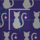 Ein Silhouette-Cartoon einer grauen Katze mit rosa Augen vor lila (die Hintergrundfarbe kann geändert werden). Ein rosa Stern hängt vom Schwanz der Katze.
