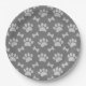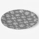 Ein Muster aus Hündchen und Knochen. Die Teller sind in Weiß und Grau gehalten und das Party ist individuell gestaltet. Design im Cartoon. Geschenkidee für Hundefreunde.