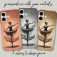 Sie macht einen Spritzer! Diese schöne und anmutige Ballerina tanzt auf dem Wasser. Sogar ihr Ballettkleid ist aus flüssigem Material. Dieser Telefonkasten wäre perfekt für die Frau, die tanzt. Personalisieren Sie diesen Fall einfach mit Ihren Initialen! In dieser Kollektion stehen drei Farben zur Auswahl: Bronze/Braun, Rose/Rosa und monochrome Schwarz/Weiß.