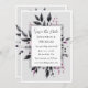 Hochzeit Save the Date mit inspirierender Zitatskriptur zeigt ein modernes botanisches Rahmendesign mit dunkelgrauen Blätter und rosa Blume. Auf der Rückseite stehen Bibelverse-Ephesianer 5:31, "Zwei werden eins."