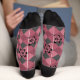 Graurosa geometrisch kariertes Muster mit Blume Socken