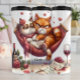 Grauschige Katzen in der Hängematte schnippelten Thermosbecher