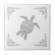 Graue Meeresschildkröte auf weißem Hintergrund, für ein modernes Küsten-Badezimmer Schrank. Diese Version hat einen passenden Schmuck an den Kanten. Für ein Badezimmer Wand Kachel Rand.