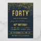 Grauschwarz | Gold Confetti 40. Geburtstag Foil Party Einladungen. Diese formelle, elegante, trendige, moderne 40. Geburtstagsfeier eignet sich für Damen und Herren. Es besteht aus goldfarbenen, klaren Linien, stilvollem Gothic-Drehbuch im Obergeschoss und ausgeklügeltem Goldfolientext auf einem dunkelblauen Hintergrund mit Duschen von glitzernden, glänzenden Goldkonfetti und Party-Raster.