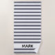 Ein auffallendes Strandtuch mit grauem und weißem Streifen. Personalisieren Sie sich mit Ihrem Namen.