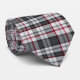 Grauer Tartan kariert mit dünnen roten und blauen Streifen.