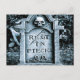 Das ist ein beängstigender Grabstein, der perfekt zu Halloween passt. Erholung in Stücke. Das ist schwarz, weiß und grau und spukhaft.