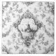Elegantes klassisches, grau-weißes Blumenmuster mit Windmühle und Segelbootsvignetten in verzierten Medallions aus Rokoko mit Garnelen aus Rose und wirbelnden Weinreben. Das Muster ist nahtlos und kann nach oben oder unten skaliert werden.