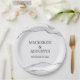 Die romantischen Teller der Hochzeitsfeier sind modern und elegant gestaltet. Die Namen der Braut und des Bräutigams, oder der Vermählten, werden in der Mitte gedruckt, sodass Sie Ihre eigenen individuelle Namen oder Texte eingeben können. Das Hochzeitstermin ist unten gedruckt. Ein gewundenes Steinmuster wird oben und unten bedruckt, mit Akzenten aus silberem Glitzer. Der Hintergrund ist weich grau.