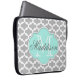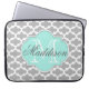 Gray Aqua Elegante Muster Monogram Laptopschutzhülle