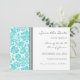 Hochzeit sparen Sie die Datumskarte mit elegantem und zeitgenössischem, türkisblauem Himmelblau, dunkelkohlegrau und weiß klassischem und Vintagem Blumendamastmuster. Geeignet für Ihre Hochzeitsdetails, erhältlich in einer breiten Palette von passenden Hochzeitsartikeln. Kontaktieren Sie uns, um eine Farbänderung oder ein individuelles Produkt anzufordern.