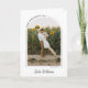 Schönes und elegantes Foto Hochzeitsprogramm mit weichem Grauton auf weißem Hintergrund. Gefaltetes Hochzeitsprogramm mit zwei Fotos, eines in einem bogenförmigen Rahmen. Weißes Hochzeitsprogramm mit Ihren Namen in einem modernen grauen Pinselskript. Hochzeitsprogramm für graues und weißes Foto.