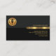 An der oberen links Ecke befindet sich ein goldenes Nib Logo, das Sie verwenden können. Rechts davon, gleich über dem goldenen Streifen ist der Firmenname. Die schwarze Ebene unten hat Ihren prestigeträchtigen Namen, den Jobtitel und die Kontaktdaten. Ein Slogan zur Bekanntmachung Ihrer Dienste befindet sich unten rechts.