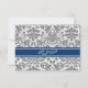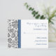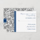 RSVP-Hochzeitskarten in elegantem und zeitgenössischem Holzkohle-Grau, dunkelmarineblau und weißem klassischem und schicken Vintagen Damastmuster. Geeignet für Ihre Hochzeitsdetails, erhältlich in vielen passenden Hochzeitsartikeln.