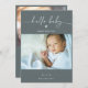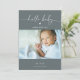 Celebrate the arrival of your little one with this gray boho photo hello baby announcement card. The design features refined handwritten typography in white, and a clean muted gray-blue tone layout, which captures the beauty of simplicity. The flowing calligraphy headline “Hello Baby” adds a gentle, heartfelt touch that's perfect for announcing your newborn’s name, birth date, weight, and time. Ideal for printing or digital sharing, this card complements any aesthetic from modern chic to classic understated elegance.