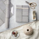Ein verfeinertes urbanes Aussehen von Rechtecken aus grauem Ziegel, das einen Blick auf eine Betonstruktur mit subtilen Unvollkommenheiten der grauen Farbtöne in diesem Bild gibt.