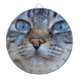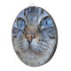 Dieses Design zeichnet sich durch ein hübsches Bild einer Katze aus, die die Kamera mit Bestimmtheit betrachtet. Es hat einen schönen grauen Pelzmantel.