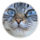 Dieses Design zeichnet sich durch ein hübsches Bild einer Katze aus, die die Kamera mit Bestimmtheit betrachtet. Es hat einen schönen grauen Pelzmantel.