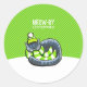 Gray Cat Scarf Weihnachten Grüner Streifen Runder Aufkleber