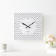 Ein einfaches Design mit abwechselnden grauen und weißen Zangenschleudern quer über die Uhr. Personalisieren Sie Ihre Daten mit Ihrem Namen oder Ihrer Nachricht.