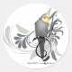 Ein graues Cockatiel mit Hintergrunddesigns. Liebe-Cocktails, ihre orangefarbenen Wangen und ihr fröhliches Aussehen bringen mir immer ein Lächeln ins Gesicht:)