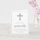 Minimalistische Beileid-Karte in Weiß mit grauem Kreuz, grauem Rand und eleganten grauen Schriftart.
