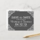 Diese elegante, Save the Date Postkarte weist einen kohlegrauen Hintergrund mit einem aufwändigen Damast-Design auf, der entlang der Grenze verläuft. Wenn Sie einen farbigen Hintergrund bevorzugen, klicken Sie einfach auf die blaue Schaltfläche "Es anpassen" und wählen Sie eine beliebige Farbe Ihrer Wahl aus.