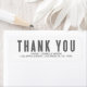 Grau "Vielen Dank" in einem fett gedruckten Schriftart mit Namen und Adressangaben unten