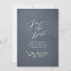 Moderne schicke Kalligraphie Save the Date mit Aquarellgrün-Design auf rauchgrau Hintergrund, einfach und elegant, ideal für rustikale Hochzeit, Frühjahrshochzeit und Sommerhochzeit. Alle passenden Teile in der Sammlung anzeigen