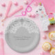 Einfache und raffinierte Elegant Lace Wedding Paper Teller mit einem weißen Spitzen-Taschenmotiv auf einem hellgrauen Imitat Vintagen Papierhintergrund. Diese klassischen und stilvollen Teller sind perfekt für eine rustikale Hochzeit. Einfach an Ihre Hochzeitsdetails anpassen. Klicken Sie auf "Anpassen", um weitere Personalisierungsoptionen zu erhalten.