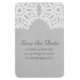 Einfach und raffiniert Save the Date Premium Flexi Magnet mit einem weißen Spitzenmotiv auf einem hellgrauen Imitat mit Vintagem Papierhintergrund. Dieser klassische und stilvolle Magnet ist perfekt für die Ankündigung einer rustikalen Hochzeit. Einfach an Ihre Hochzeitsdetails anpassen. Klicken Sie auf "Anpassen", um weitere Personalisierungsoptionen zu erhalten.